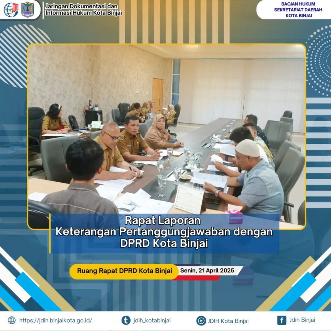 Binjai, 21 April 2025 Kepala Bagian Hukum Sekretariat Daerah Kota Binjai Muhammad Iqbal didampingi Ketua Tim Kerja Dokumentasi dan Informasi Fransiscus A.E Tambunan menghadiri Rapat Laporan Keterangan Pertanggungjawaban dengan Komisi A DPRD Kota Binjai di Ruang Rapat DPRD Kota Binjai.